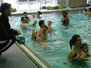 We sang nursery rhymes and splashed around. It was great! Bennett's already living up to his waterbaby heritage.